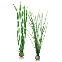 I love this brand and type of plant for my aquarium. Our local pet store only carries the small and medium, so when I found the large online I ordered immediatly. They are the best and I will continue to purchase this brand.However, with in 2 hrs of having the plants in the tank our pleco became entangled in the grass like plant (it is made poorly and left with jagged edges) and cut up his fins very badly. The wider leaf plant is perfect though.They were a little bigger than I had anticipated but can be cut down to proper size, which I'm fine with.