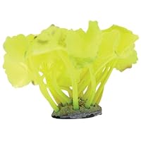 I love how this decoration fits into my tank! Its soft and fluid moving, and I don't have to worry about it tearing up my fishes fins. I put on the moon lights, and it has a tinge of glow to it. Love it!
